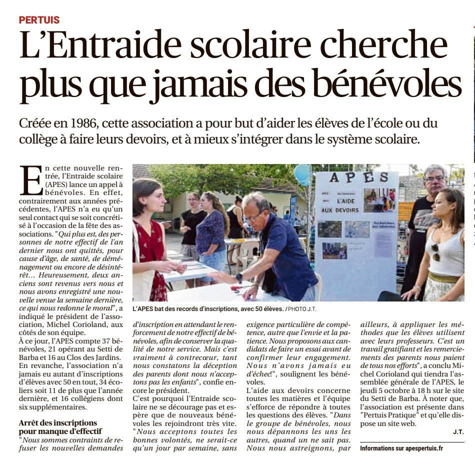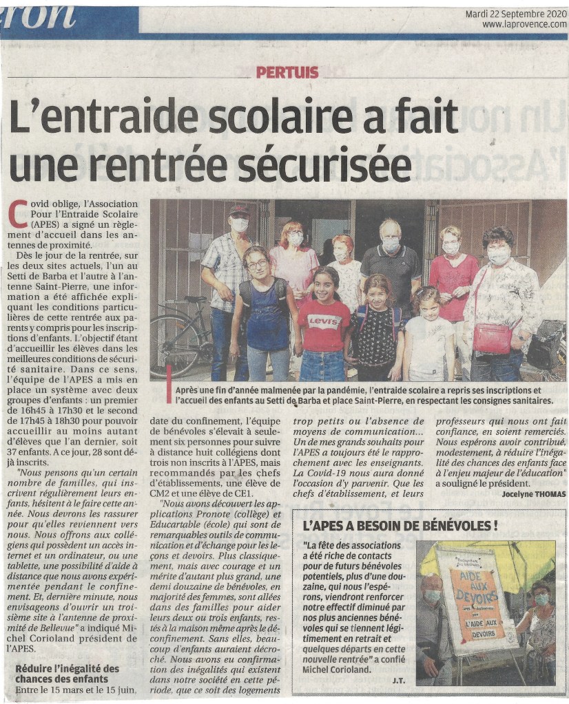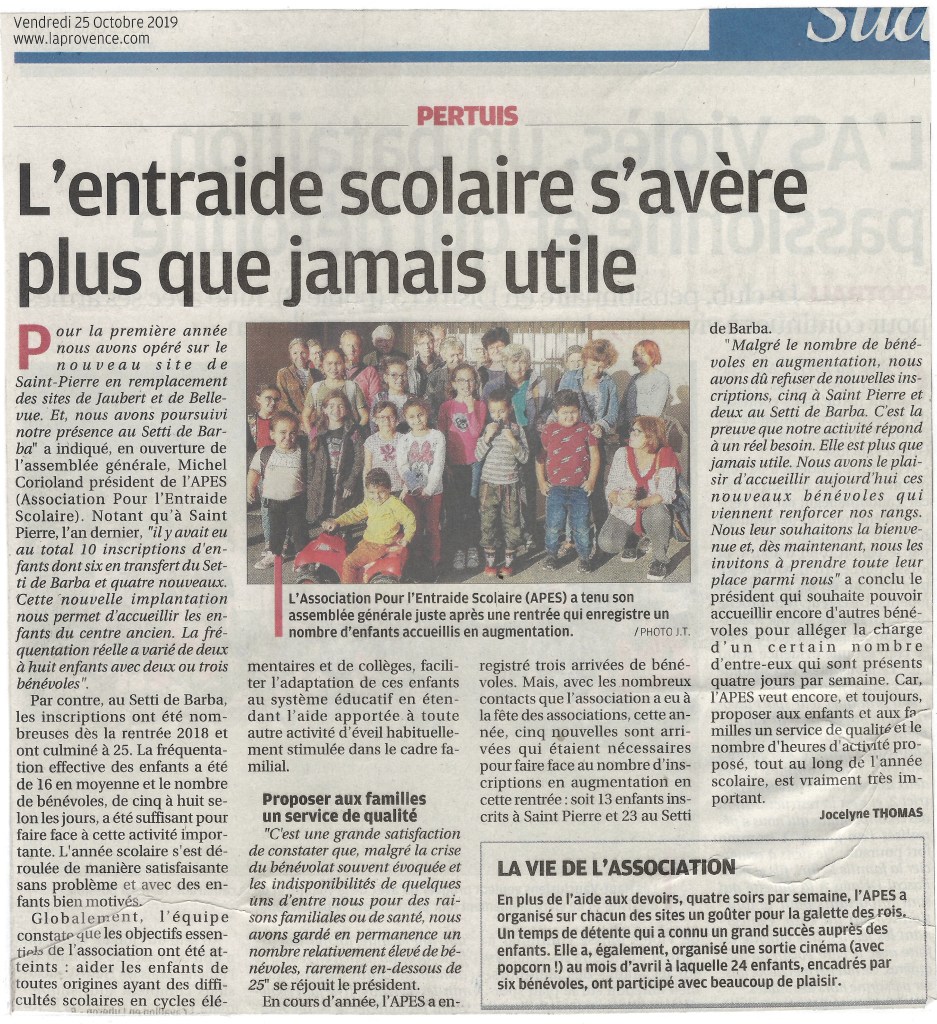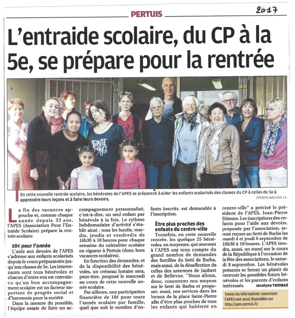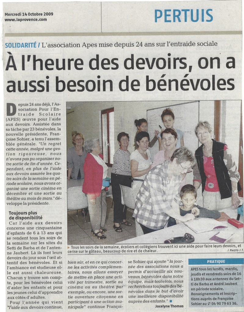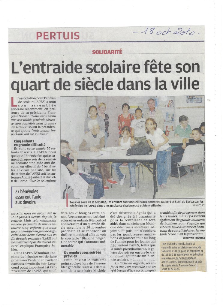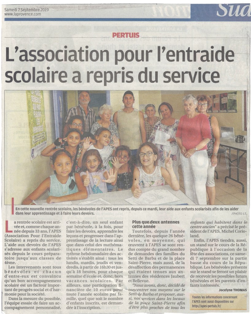 Cette modification a été acceptée par l’assemblée générale extraordinaire. Désormais l’APES de Pertuis devient l’APESAF à Pertuis (Association Pour l’Entraide Scolaire et l’Apprentissage du Français A.P.E.S.A.F. à Pertuis).