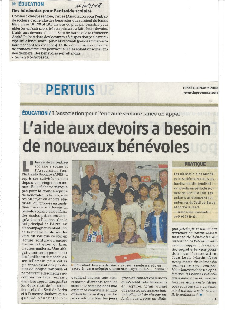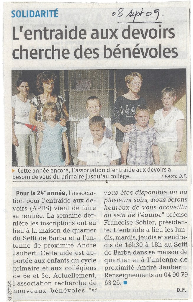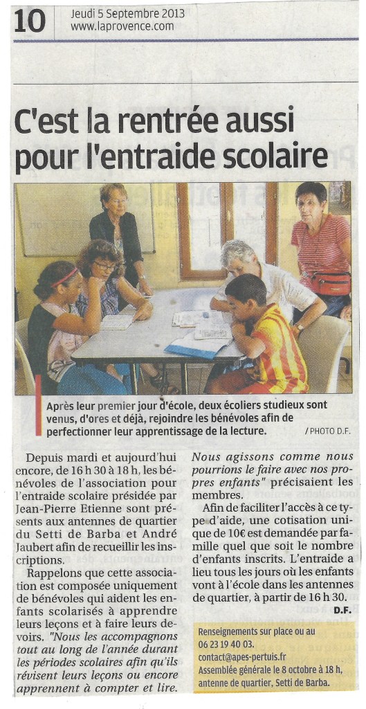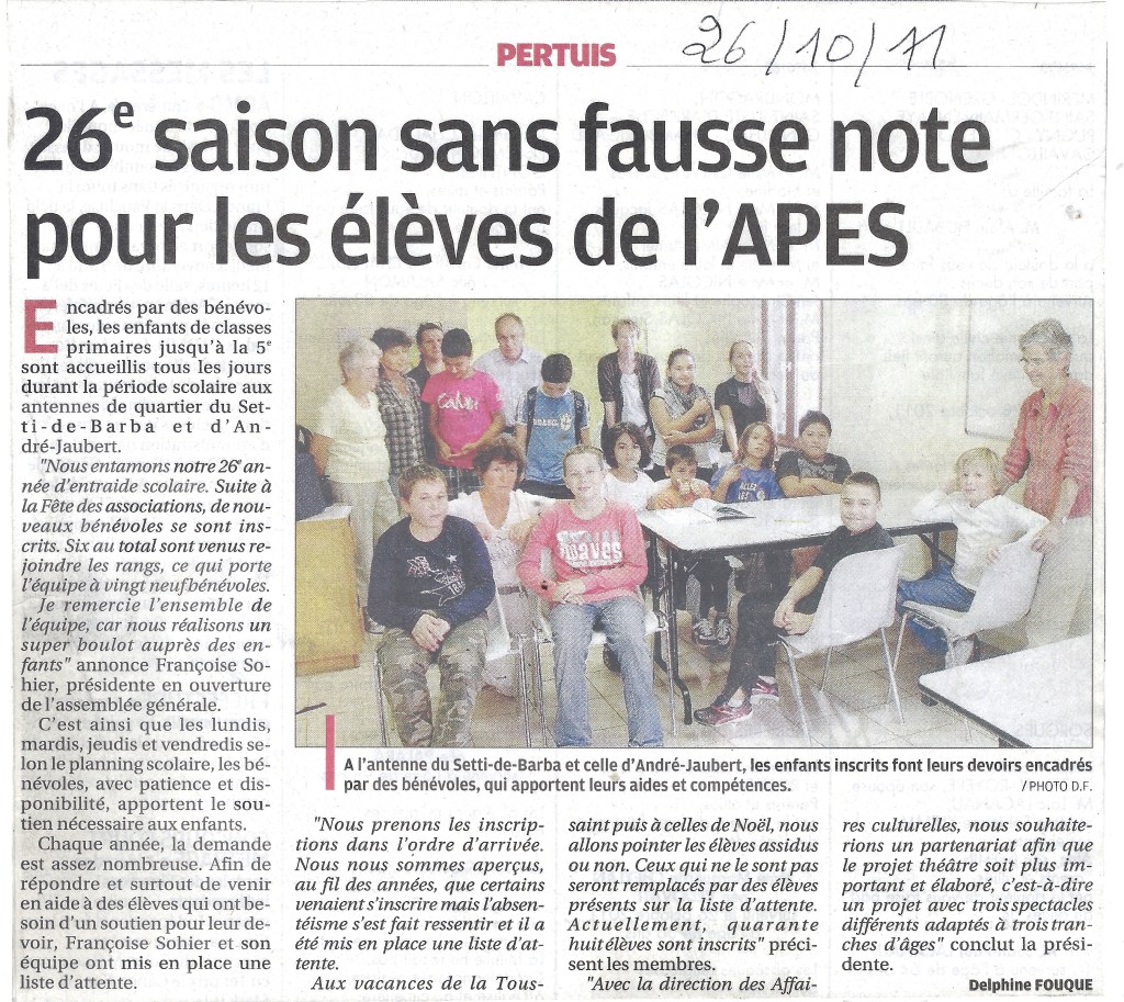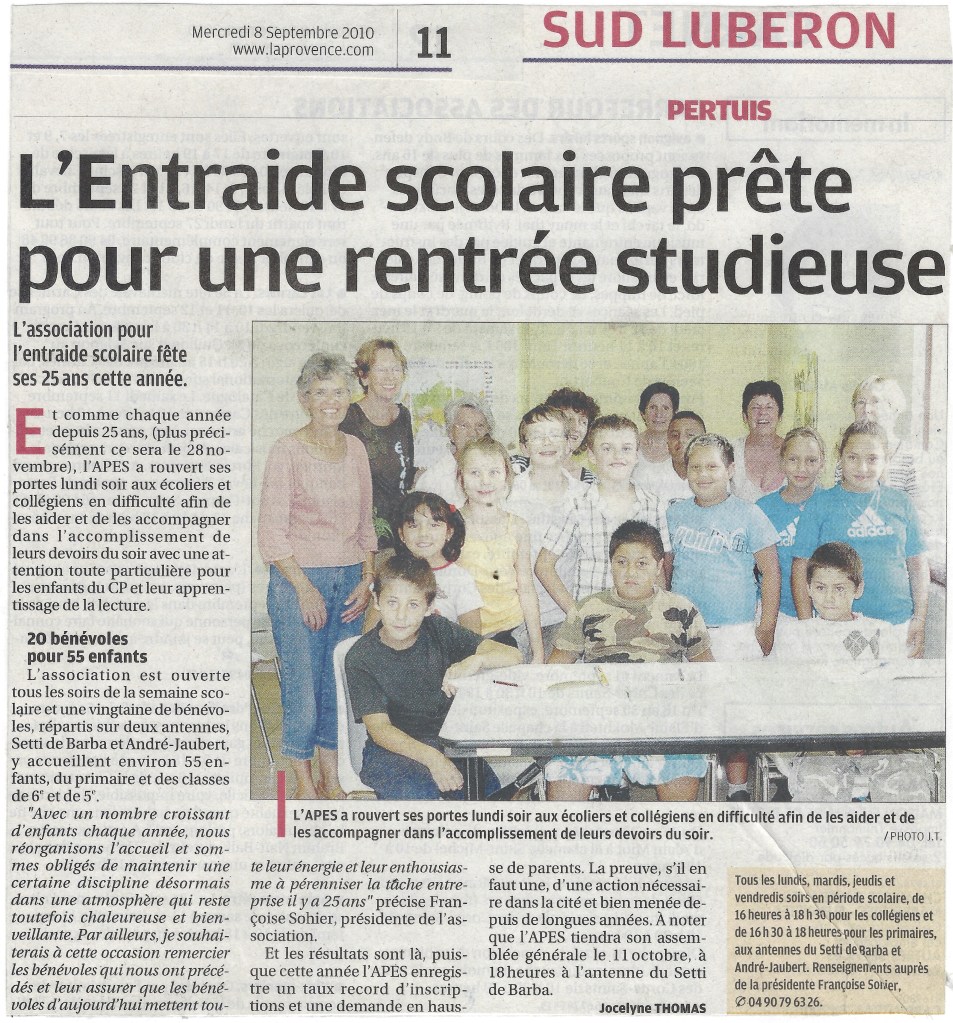 L’APES existe depuis 1986. Elle fêtera ses 40 ans l’an prochain. Elle a régulièrement été suivie par le journal la Provence tout au long de son existence. Au SETTI, un PressBook a été conservé des articles depuis l’an 2000. Sur une idée de Claude Senard, vous trouverez ci-dessous ce PressBook regroupé en un diaporama.