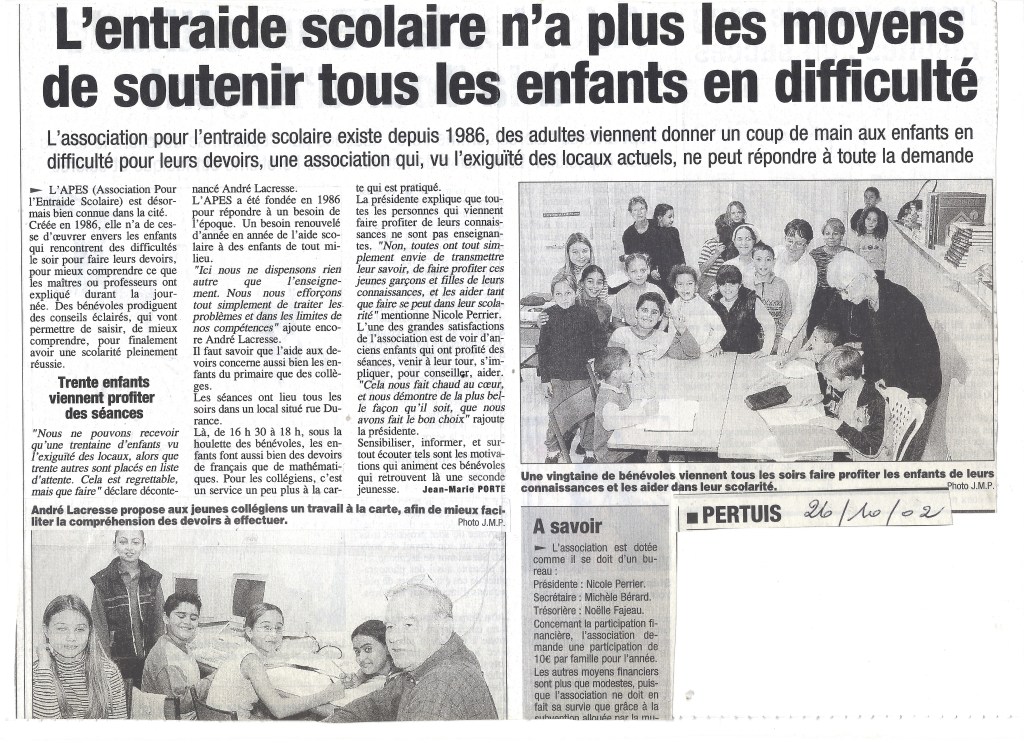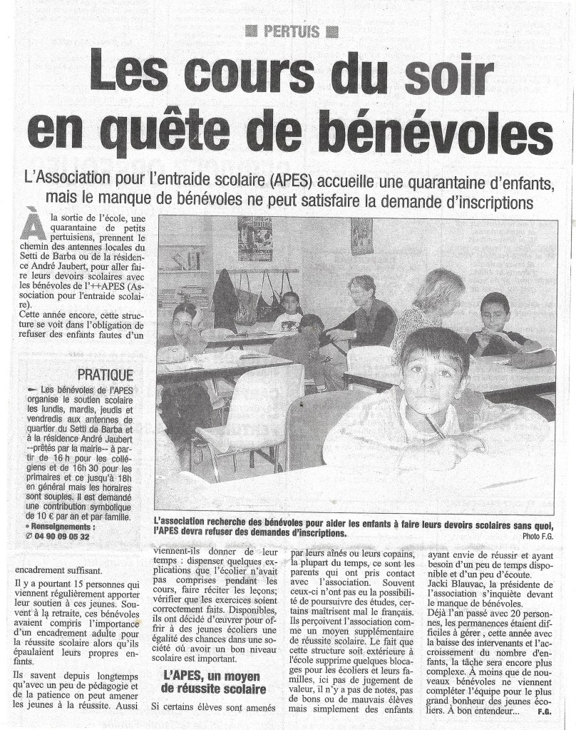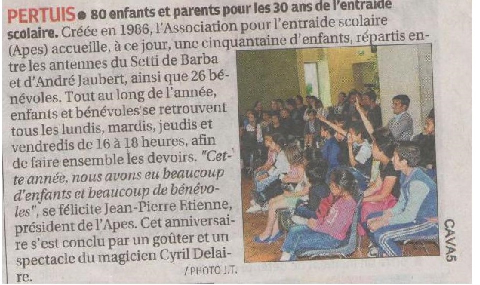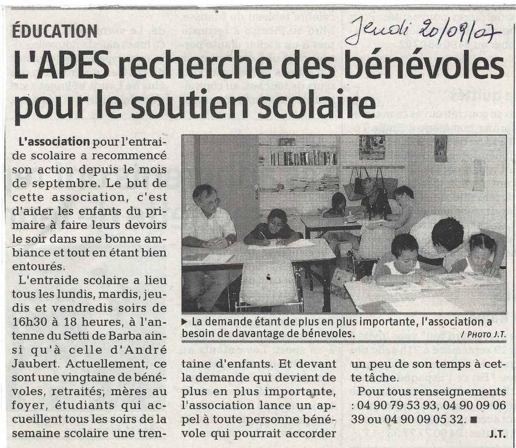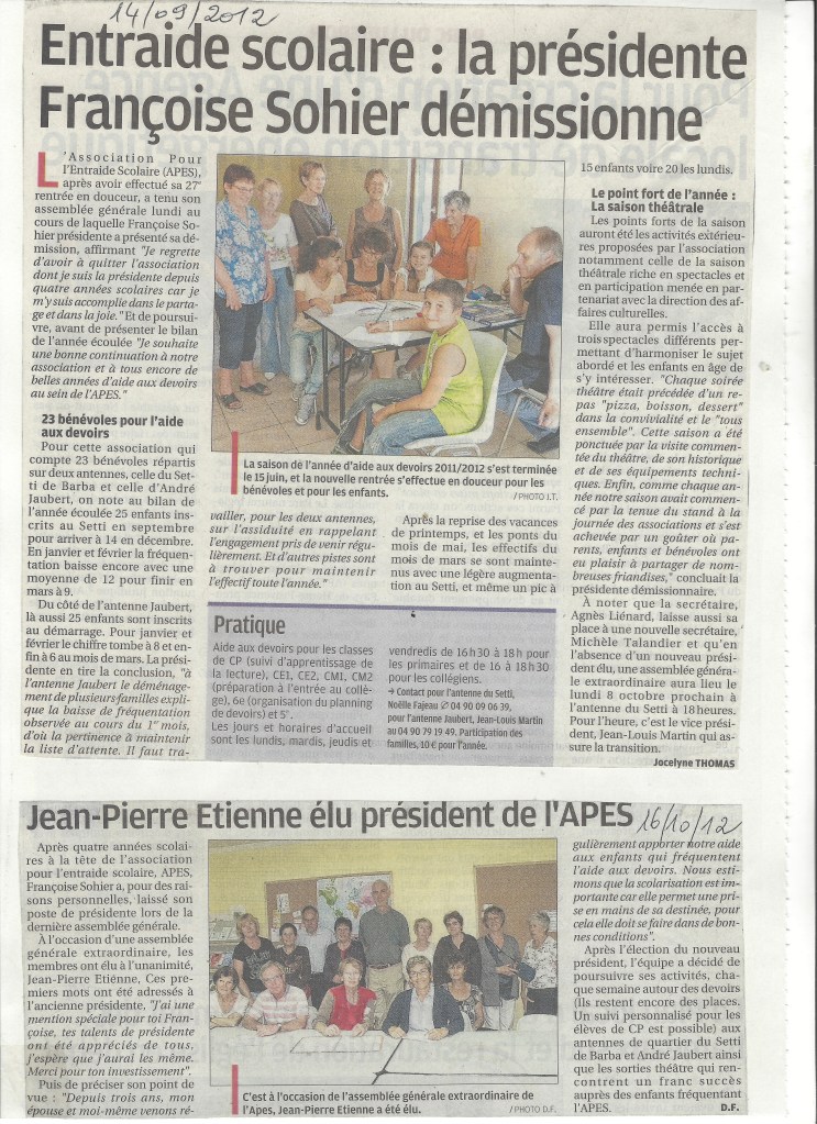L’APES existe depuis 1986. Elle fêtera ses 40 ans l’an prochain. Elle a régulièrement été suivie par le journal la Provence tout au long de son existence. Au SETTI, un PressBook a été conservé des articles depuis l’an 2000. Sur une idée de Claude Senard, vous trouverez ci-dessous ce PressBook regroupé en un diaporama.