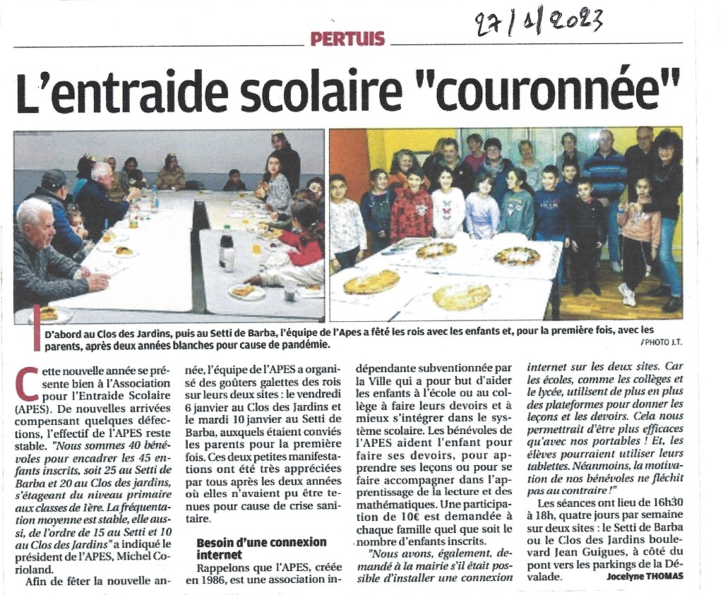 Depuis 2023-24, une activité d’apprentissage et de perfectionnement en français pour petits et grands a été développée par une bénévole au sein de l’APES. Cette activité ne faisait pas partie du but de l’association qui était d’aider les enfants rencontrant des difficultés scolaires à l’école  et au collège.