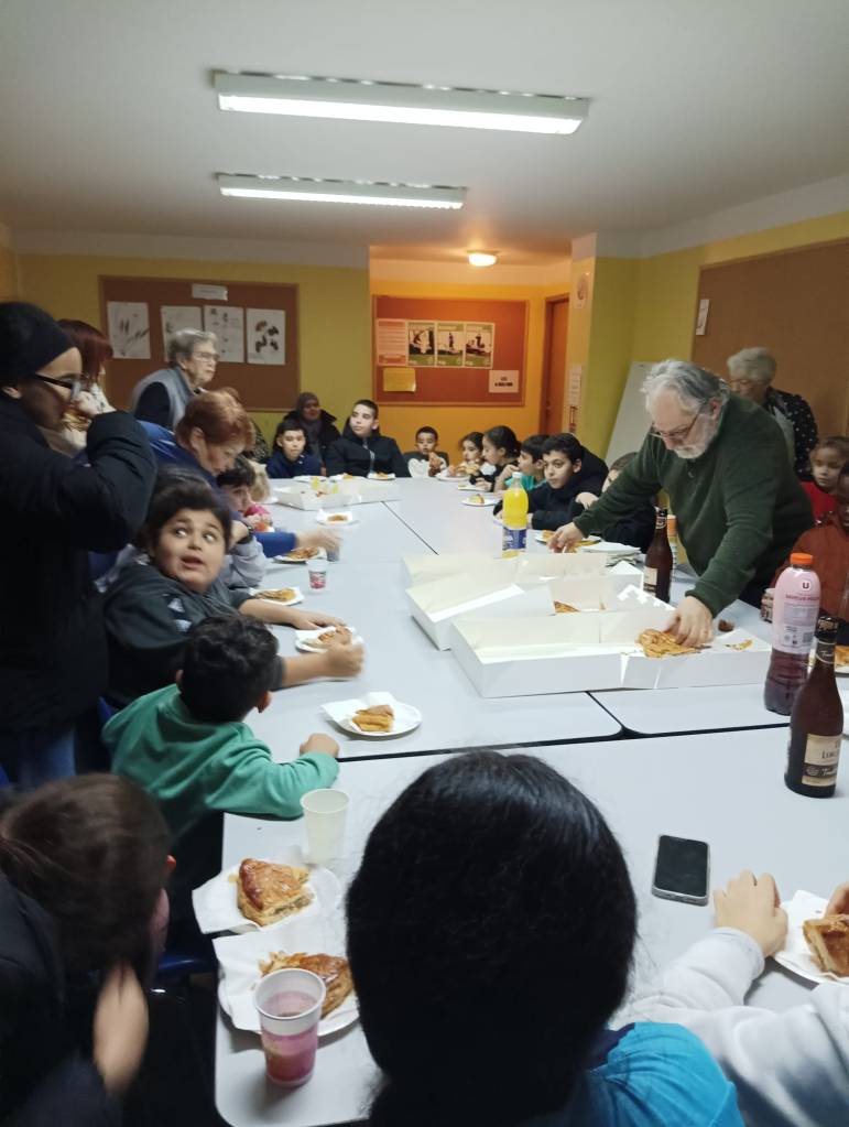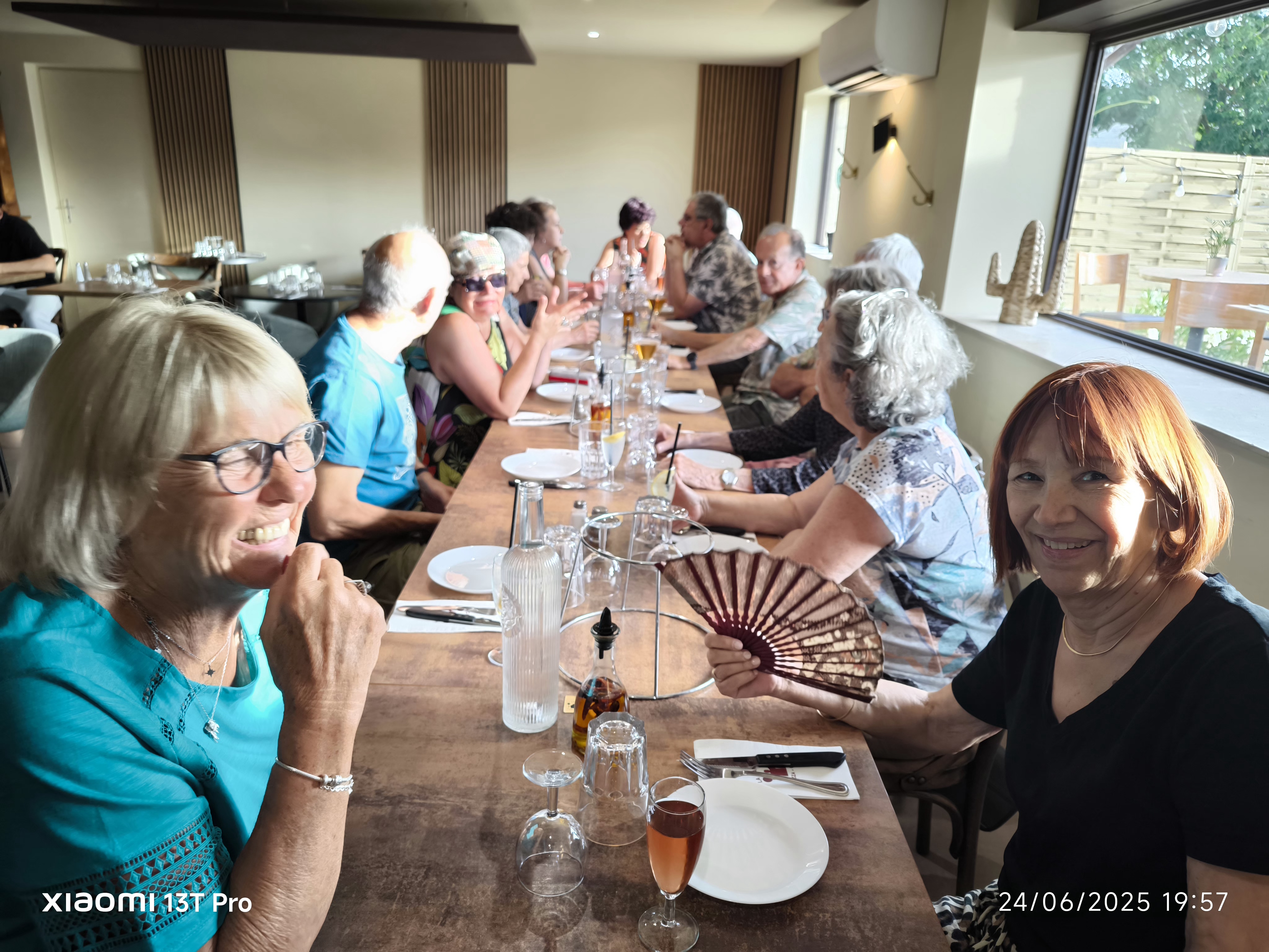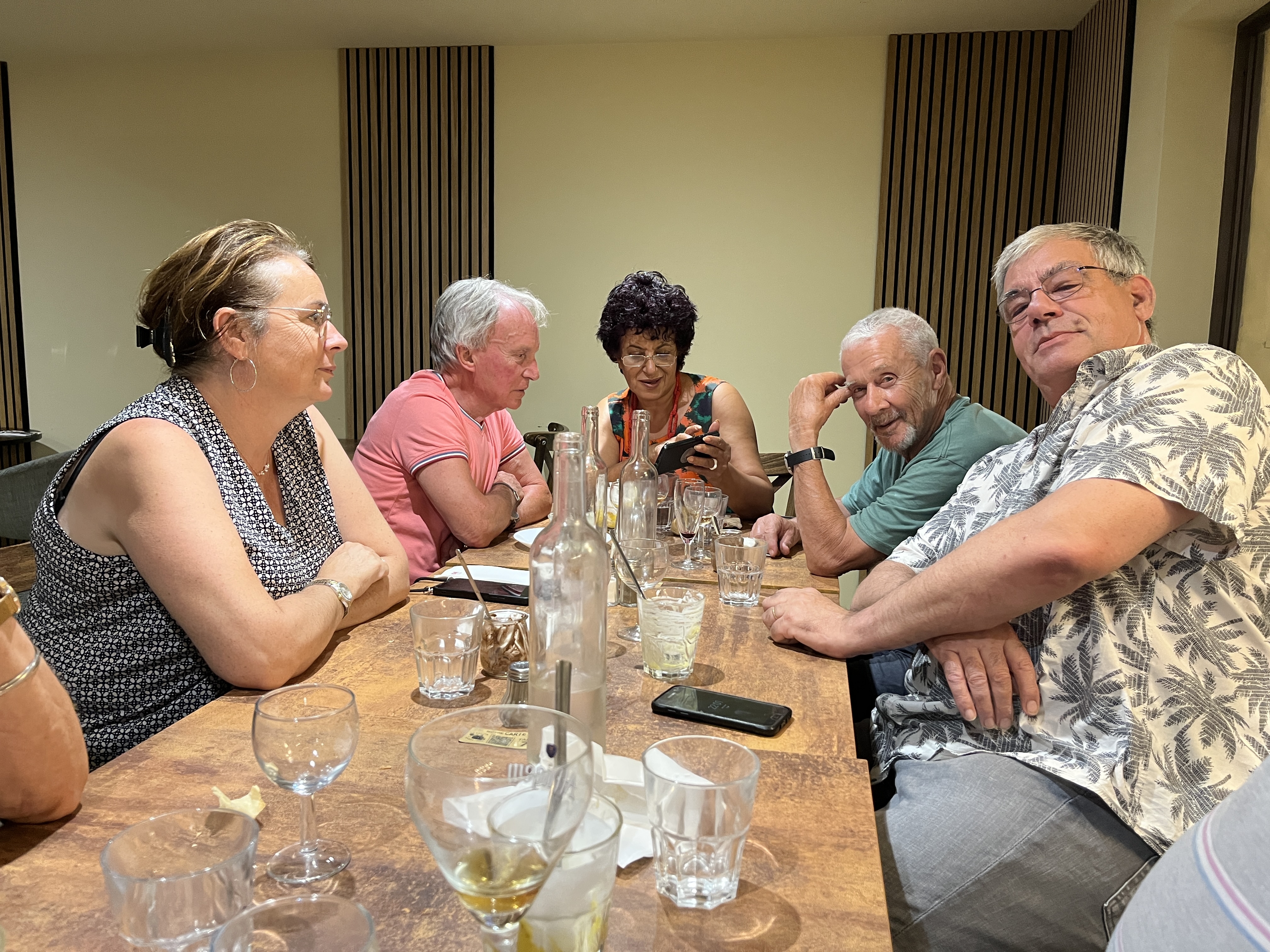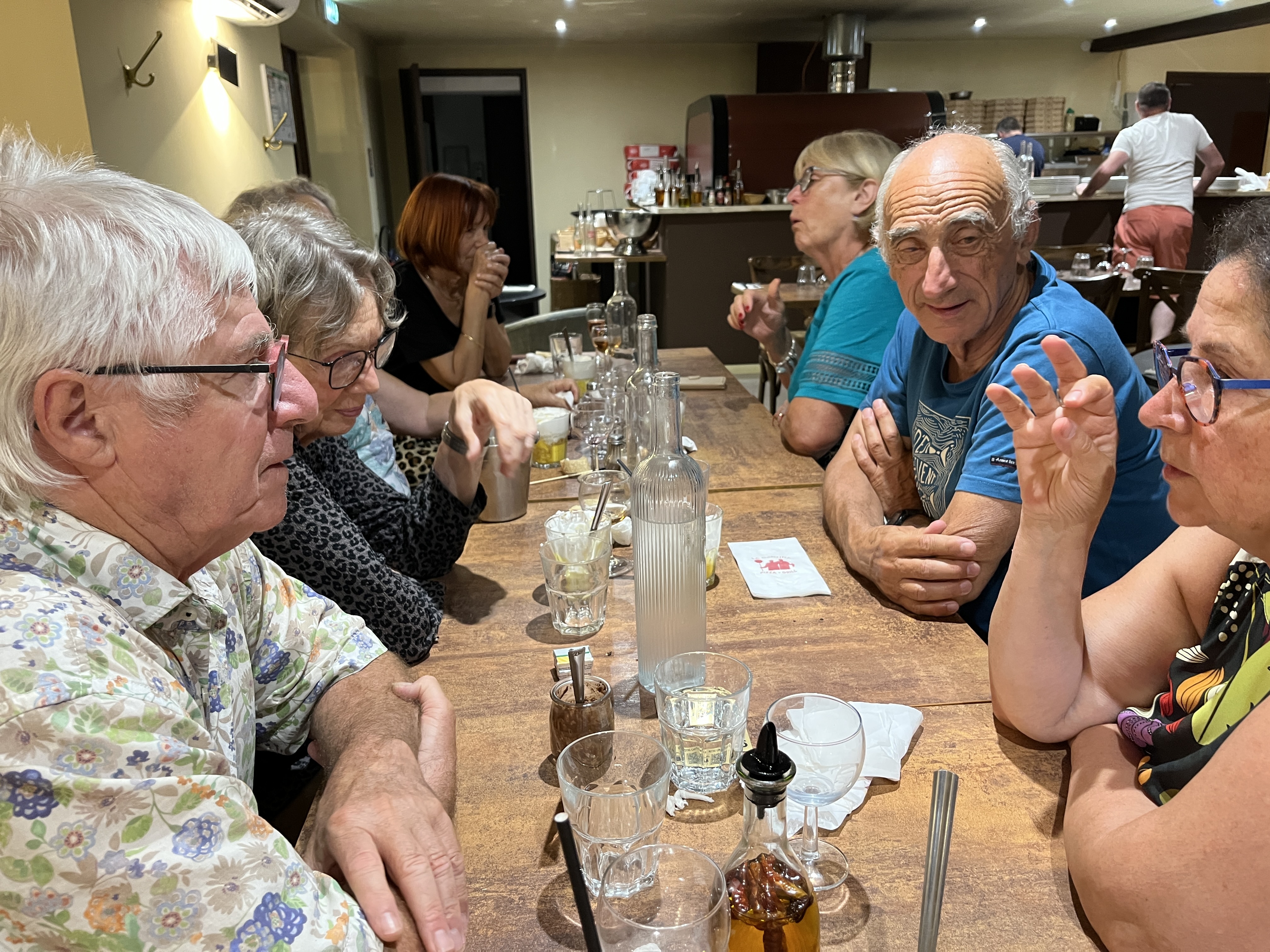 Morceaux de pizza, assiette de charcuterie, encornet ou brochette de poulet, crème au chocolat. Le repas était copieux. Surtout les convives étaient de qualité, la table agréable. Nous nous sommes promis de nous retrouver l’an prochain après cet agréable moment passé ensemble.