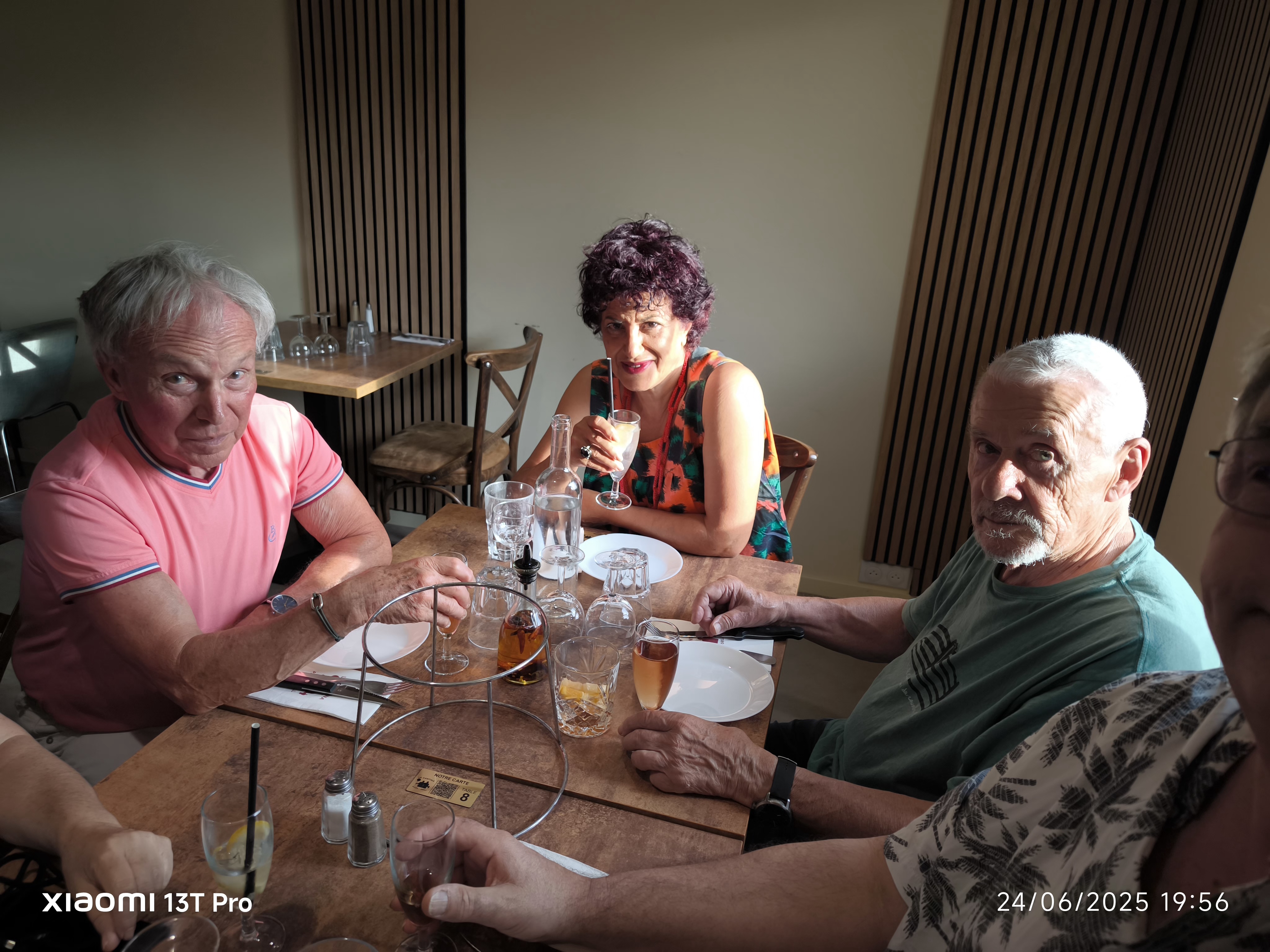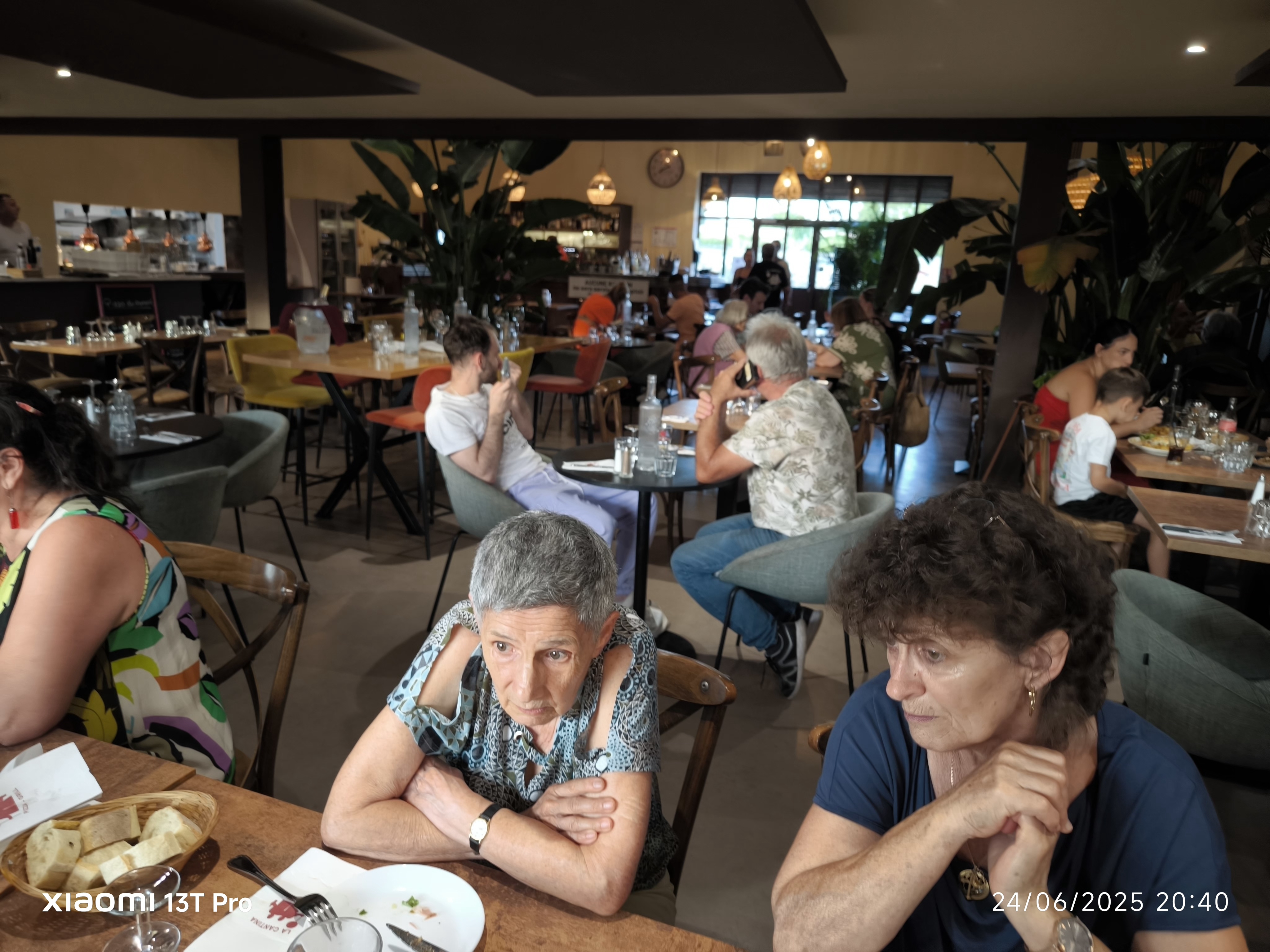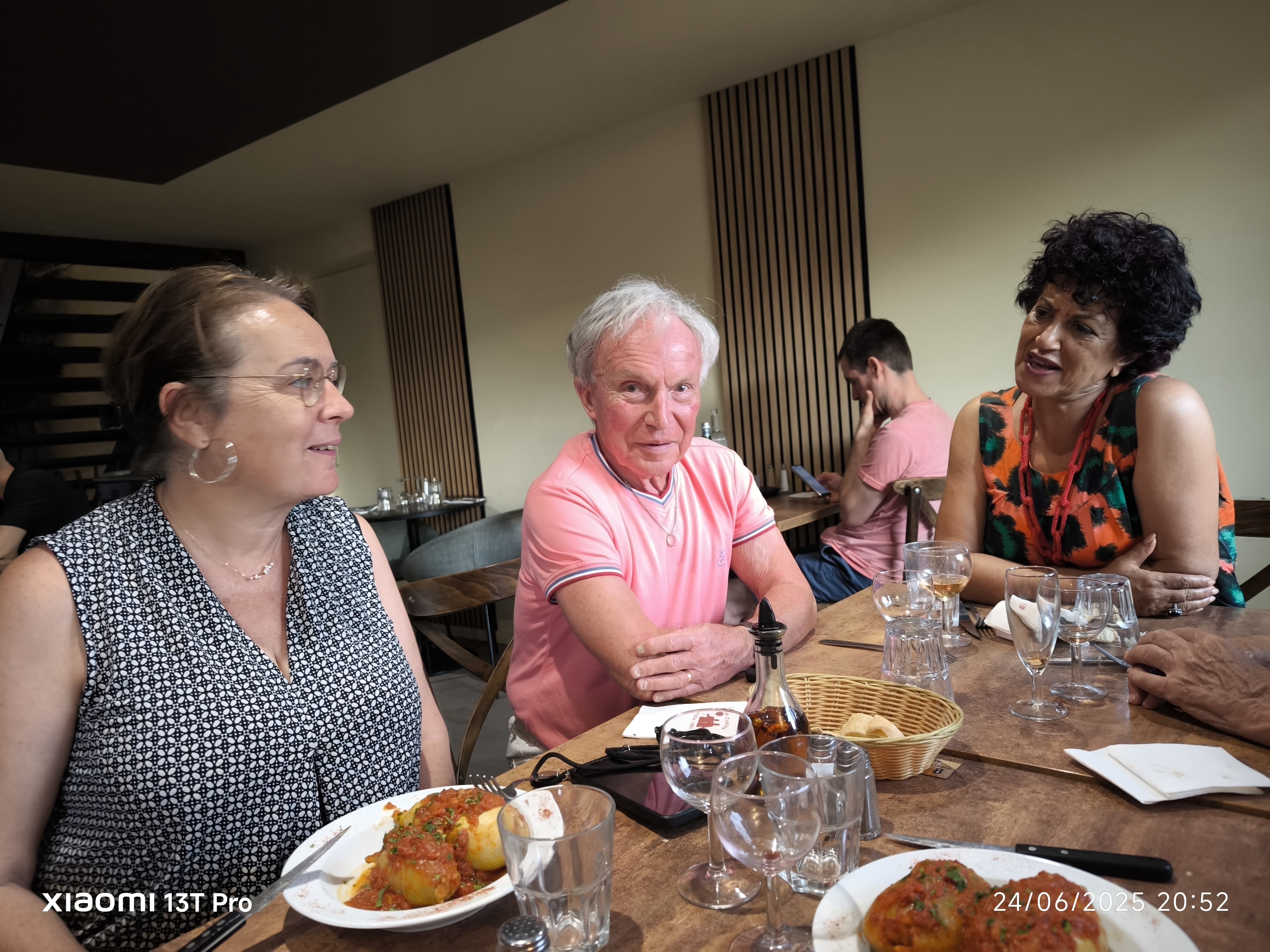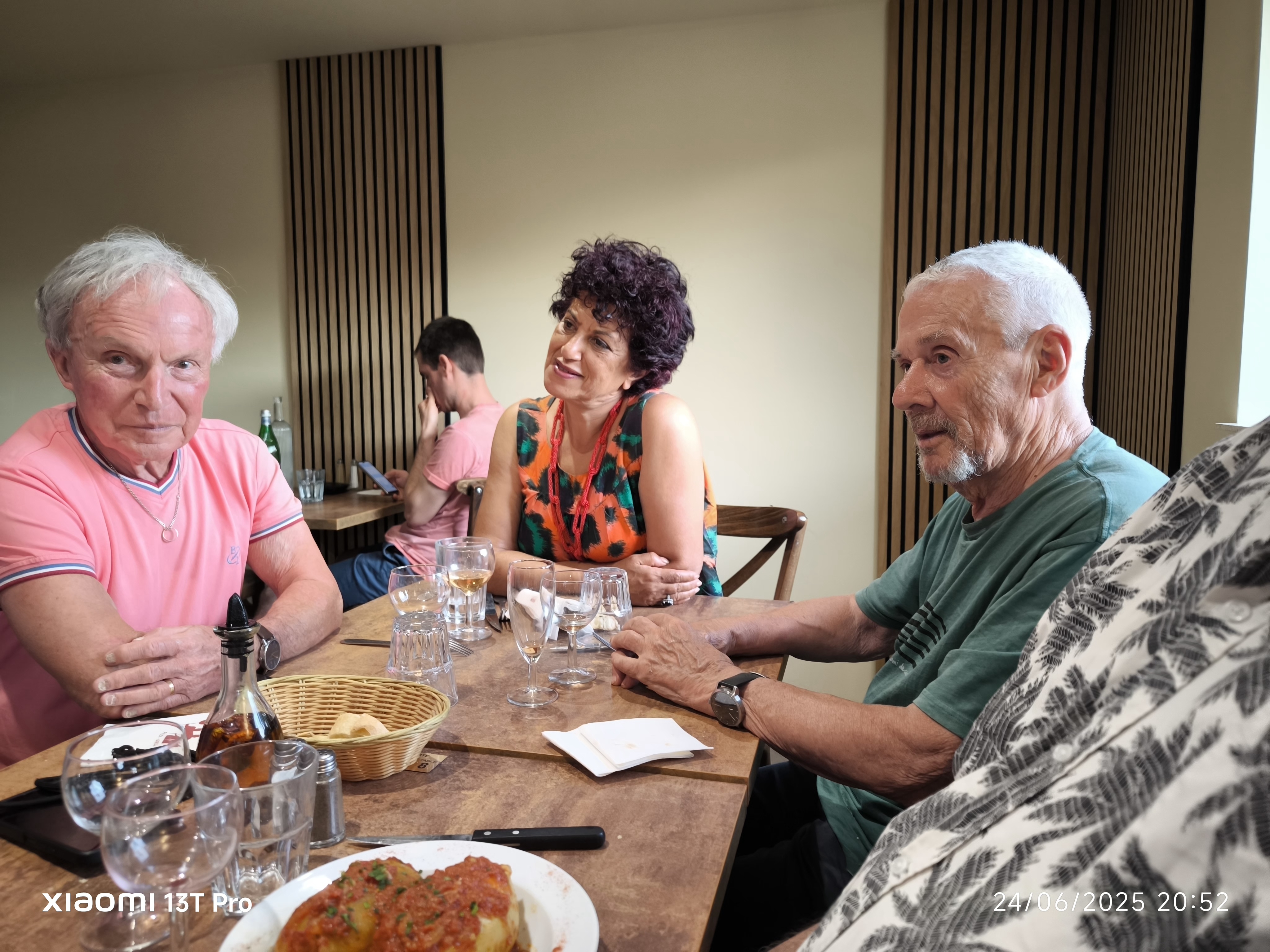 Morceaux de pizza, assiette de charcuterie, encornet ou brochette de poulet, crème au chocolat. Le repas était copieux. Surtout les convives étaient de qualité, la table agréable. Nous nous sommes promis de nous retrouver l’an prochain après cet agréable moment passé ensemble.